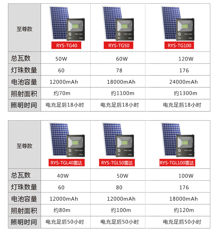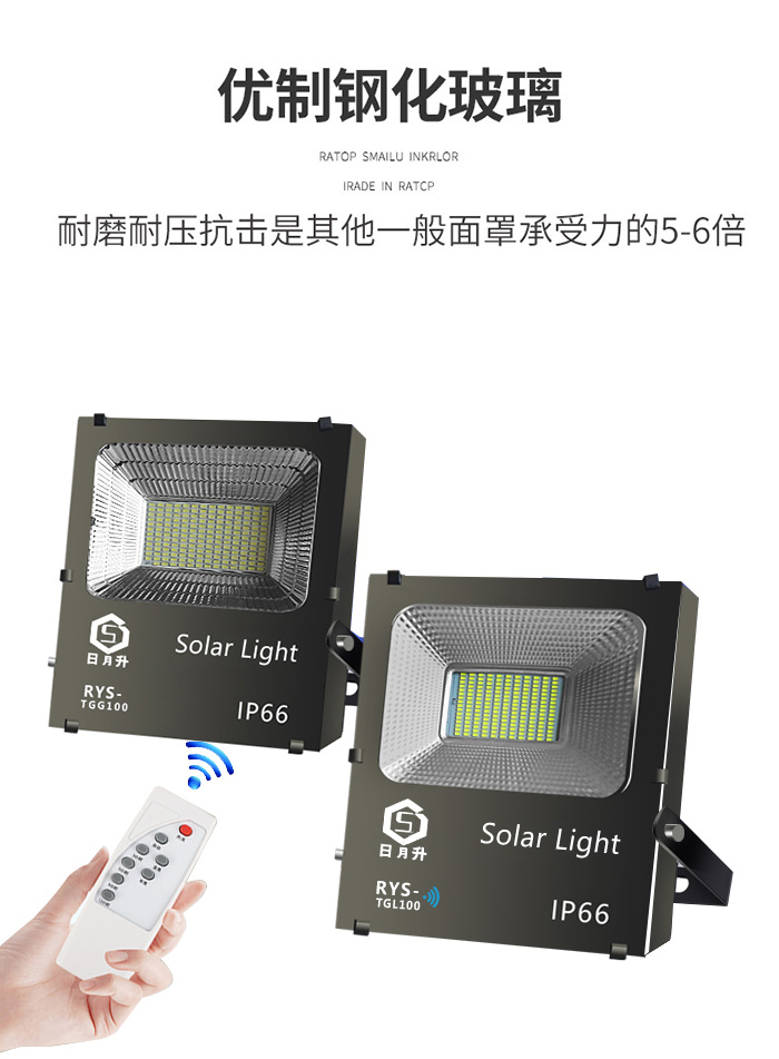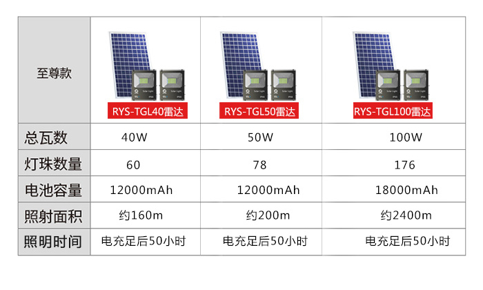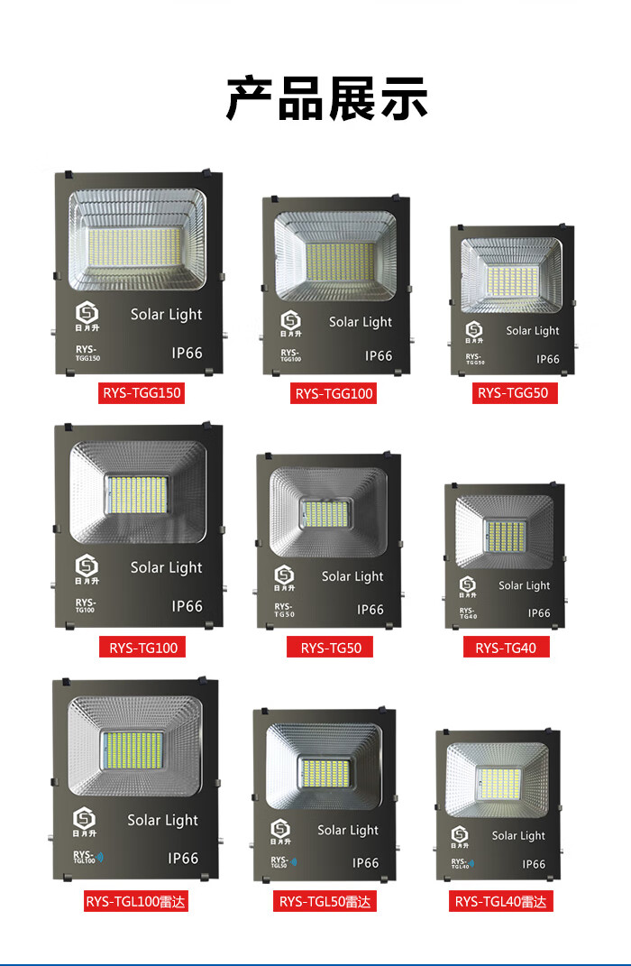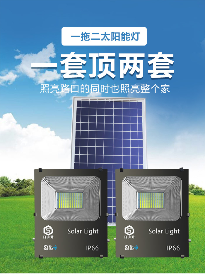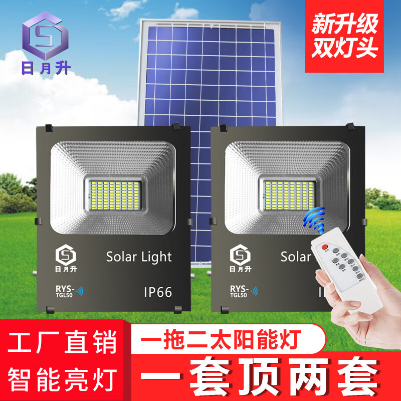 日月升 RYS-TGL50-2雷达 太阳能投光灯 雷达感应灯 射灯 一拖二 50W*2 自营