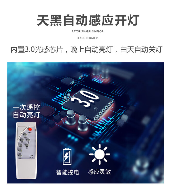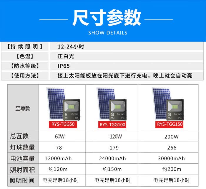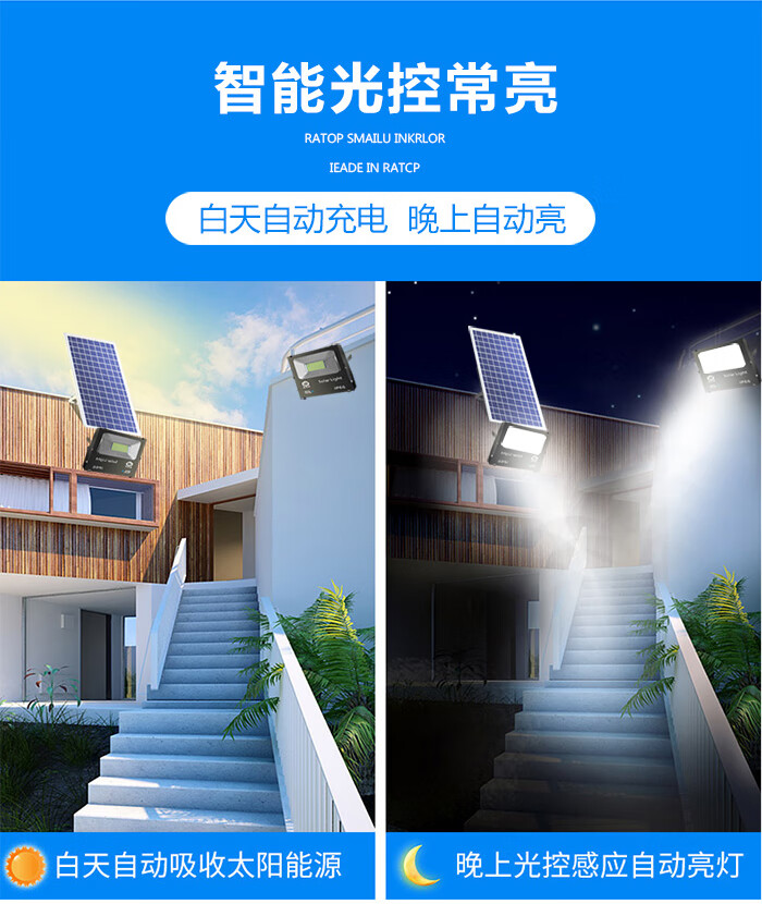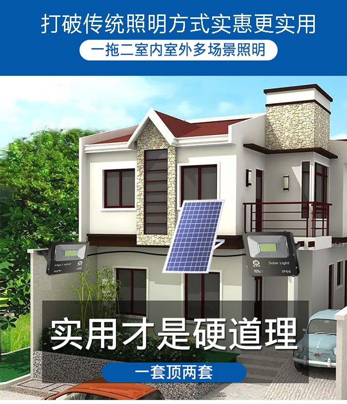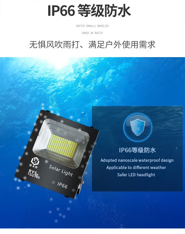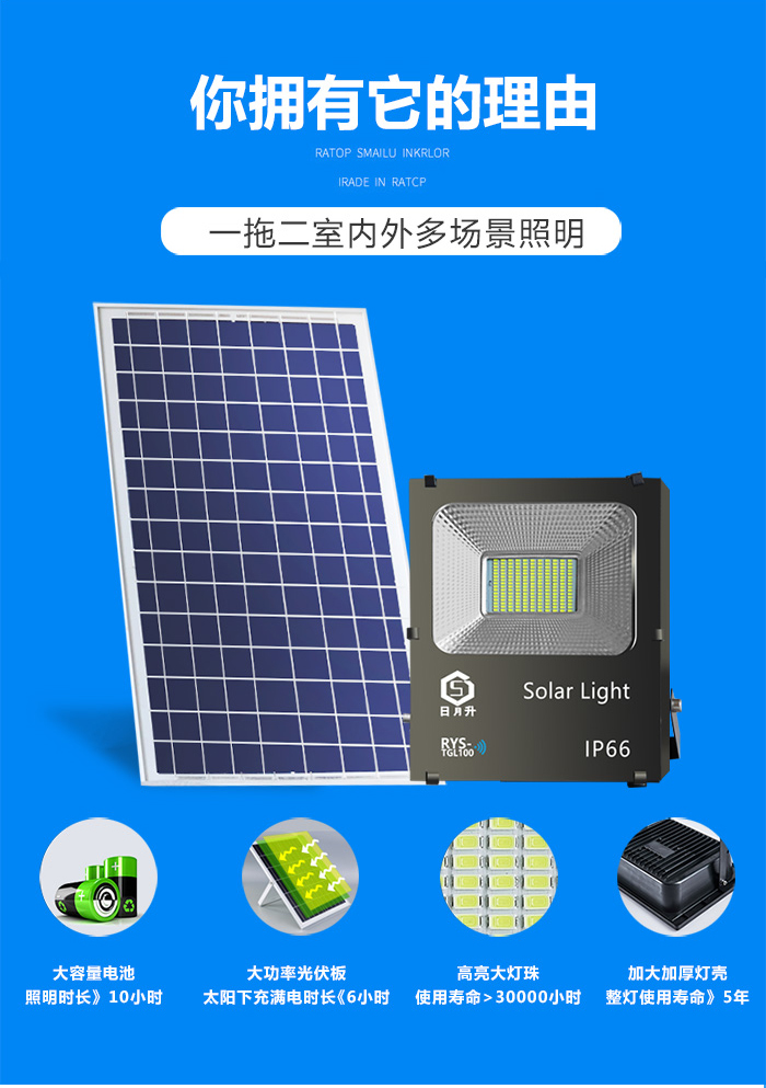 日月升 RYS-TGL50-2雷达 太阳能投光灯 雷达感应灯 射灯 一拖二 50W*2 自营
