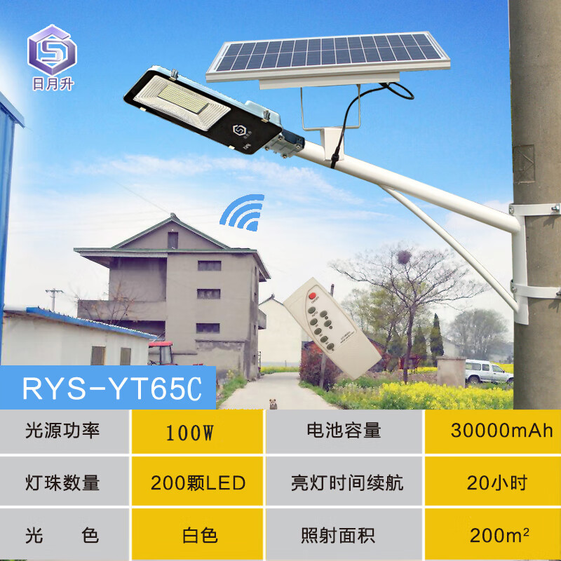 日月升 RYS-YT65C 太阳能路灯 水泥杆灯 电线杆路灯 抱杆灯100W(196颗灯珠) 自营