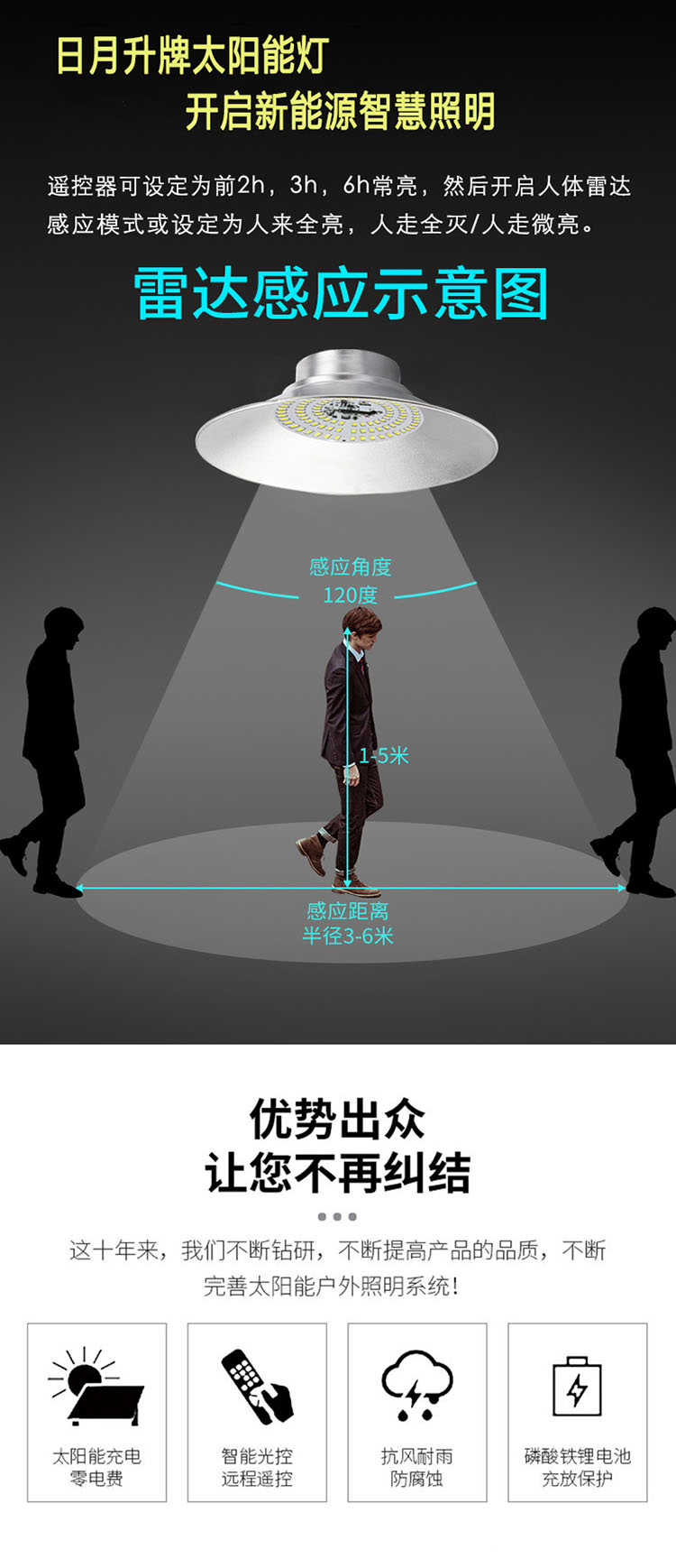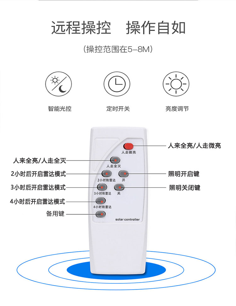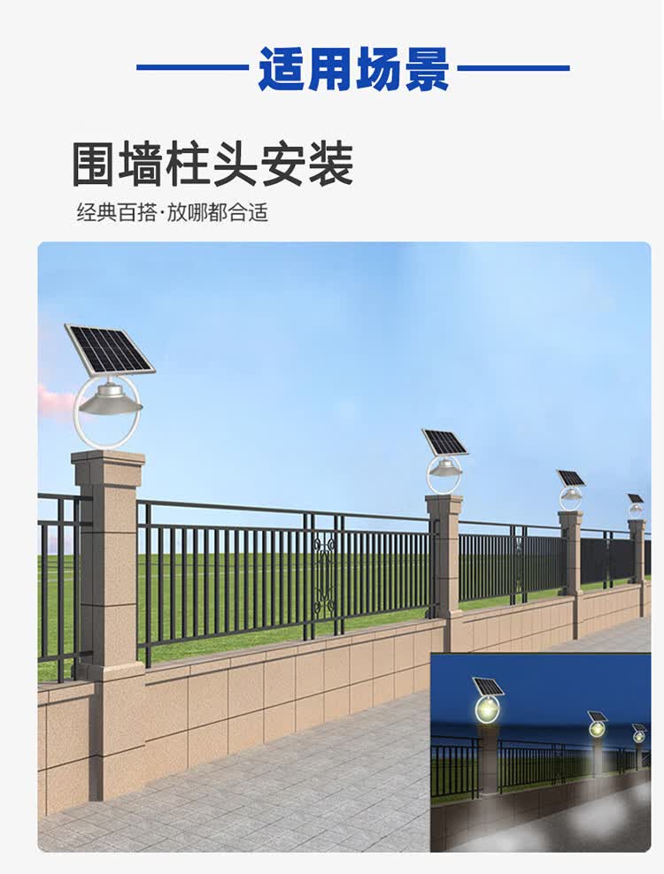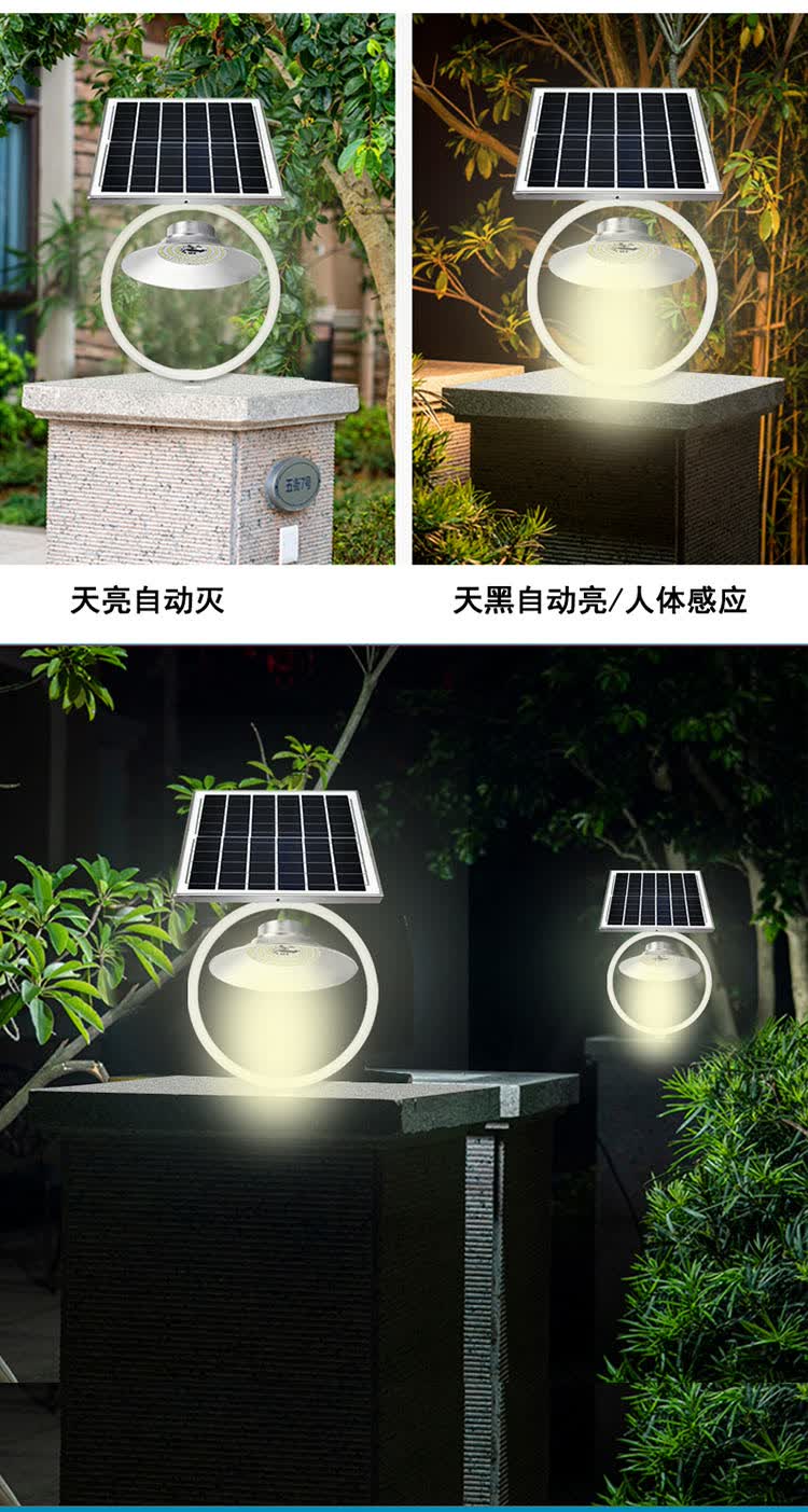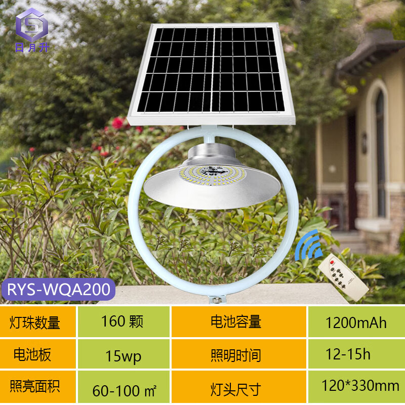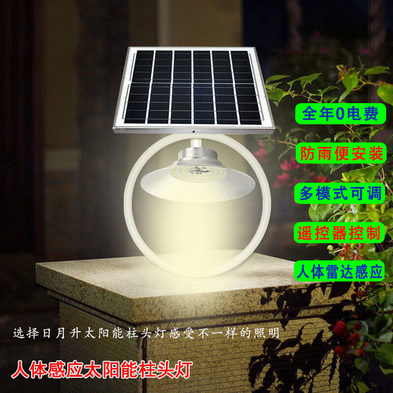 日月升 RYS-WqA200 太阳能柱头灯 围墙灯 雷达感应灯 7W 自营