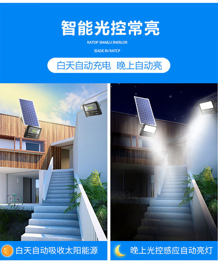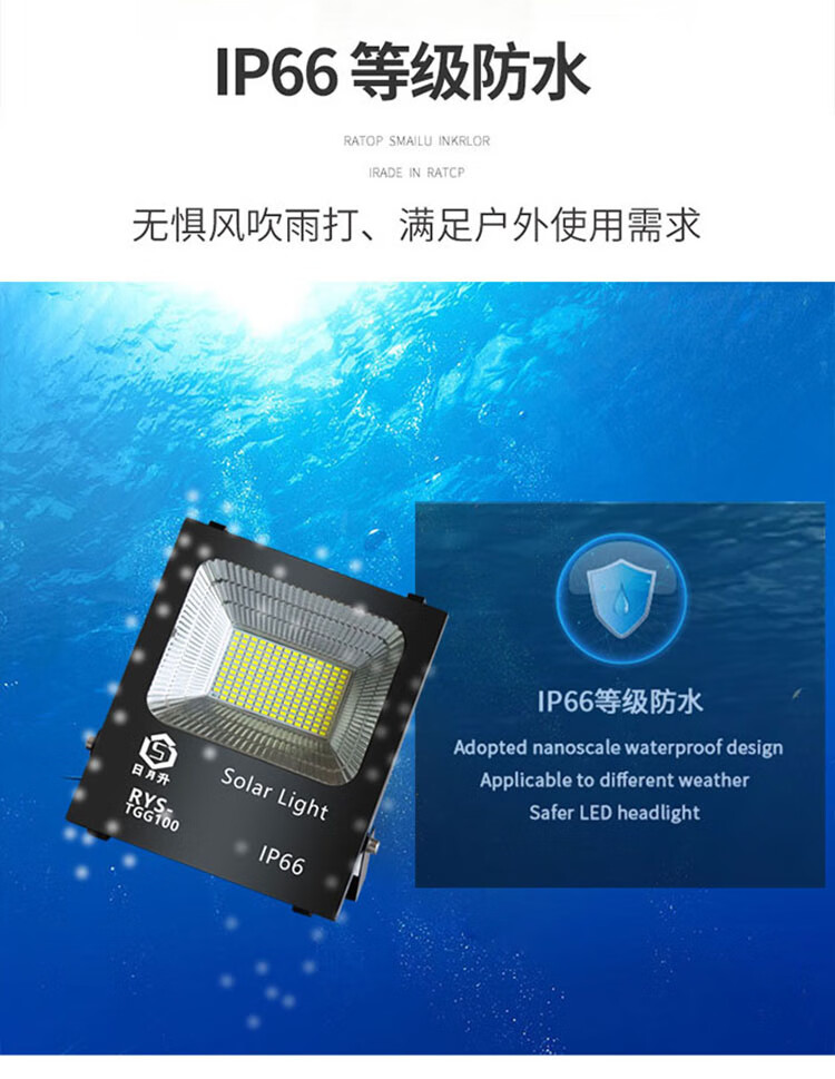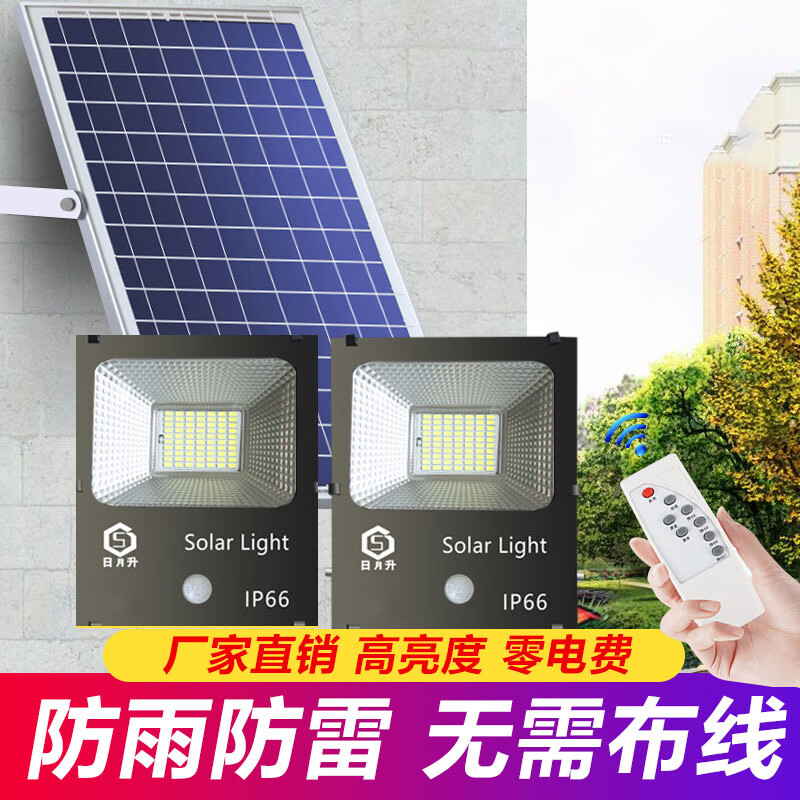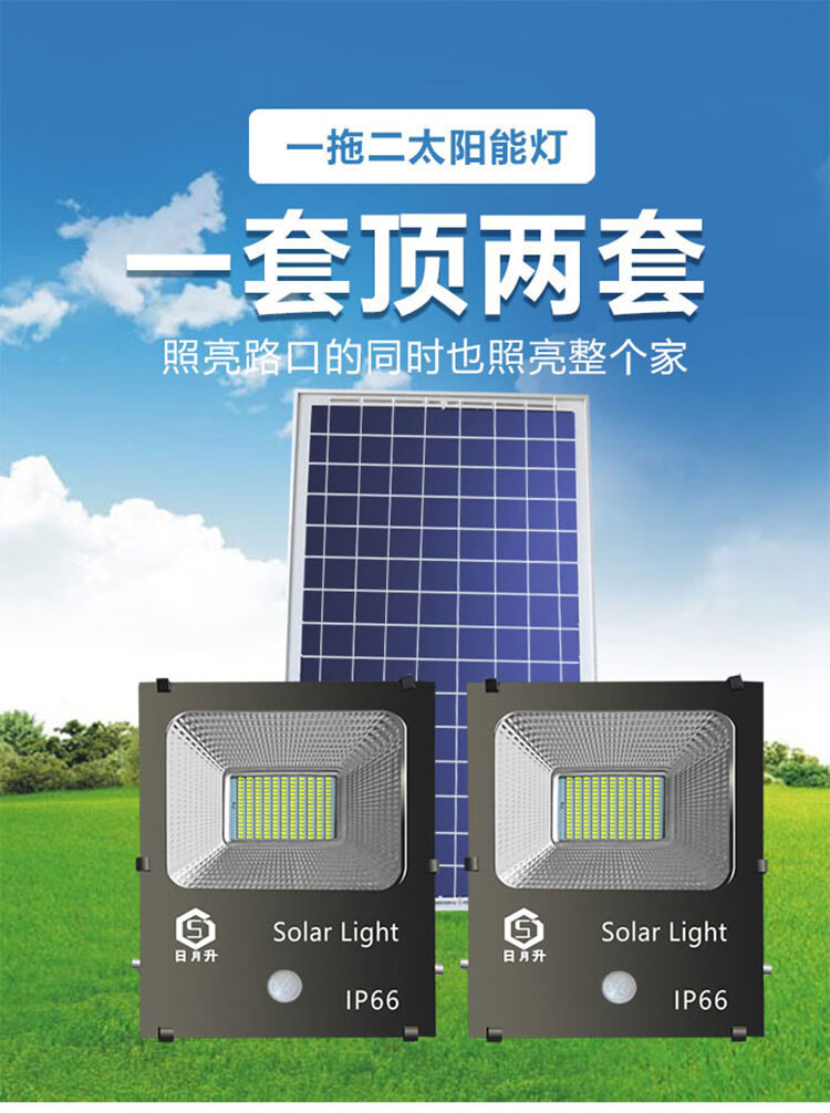日月升 RYS-TGH20D-2 太阳能投光灯 红外感应 一拖二双灯头 20W*2 自营