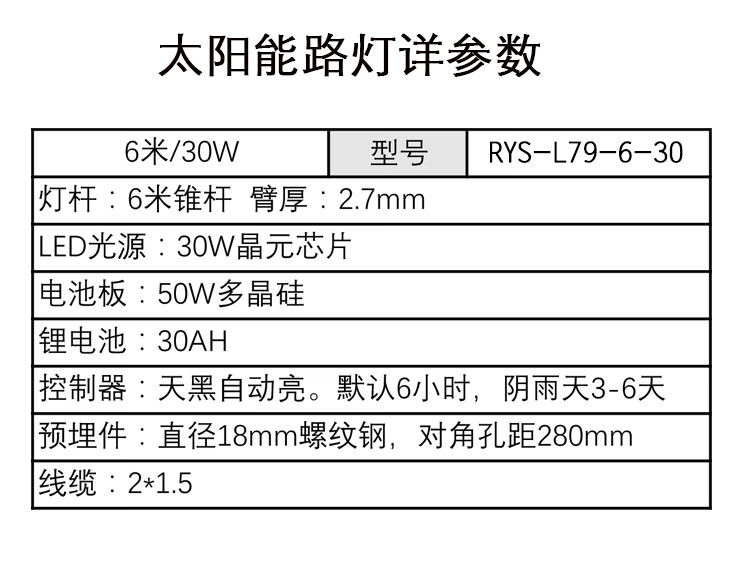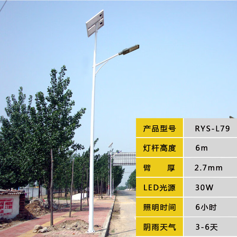 日月升 RYS-L79-6-30 太阳能路灯 锥杆灯杆 6米30W 自营