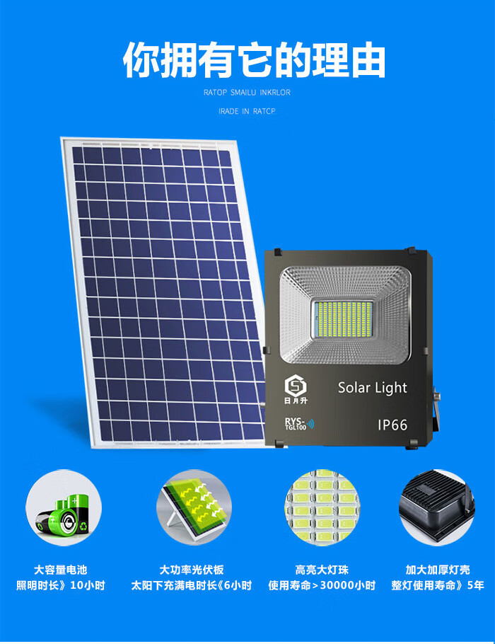 日月升 RYS-TG40 太阳能投光灯 射灯 40W 自营
