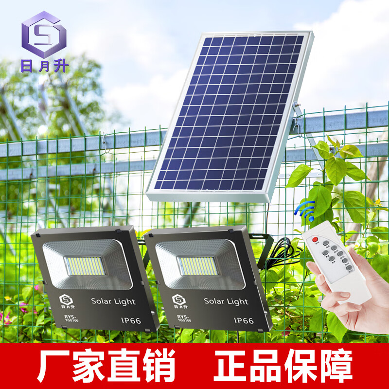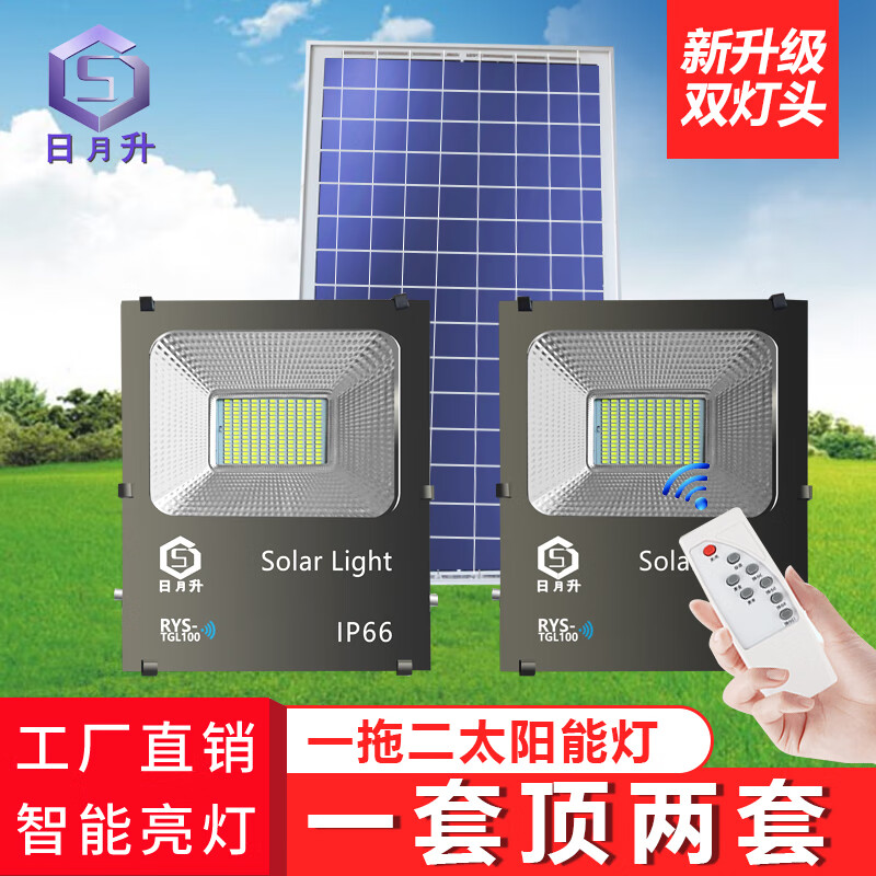 日月升 RYS-TGL100-2雷达 太阳能投光灯 雷达感应灯 射灯 一拖二 100W*2 自营